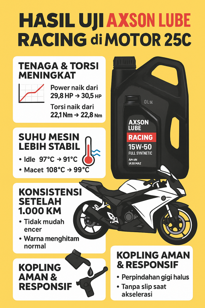 Uji Oli Axson Lube pada Motor Sport 250cc: Performa, Suhu, dan Daya Tahan