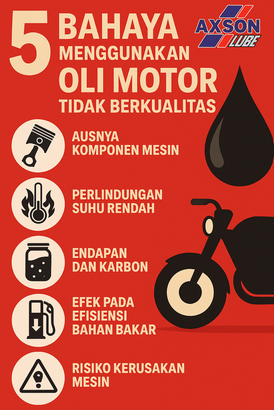 03 Agu Fungsi dan Manfaat Oli Oli Motor: Dampak Oli yang Tidak Diganti Tepat Waktu dan Konsekuensinya untuk Mesin 3 Agustus 2025 By adminaxsonlube 0 comments Facebook Twitter Pinterest linkedin Telegram Perawatan motor yang baik tidak hanya soal mencuci atau memoles bodi, tetapi juga merawat mesin dari dalam. Salah satu aspek terpenting...Continue reading
