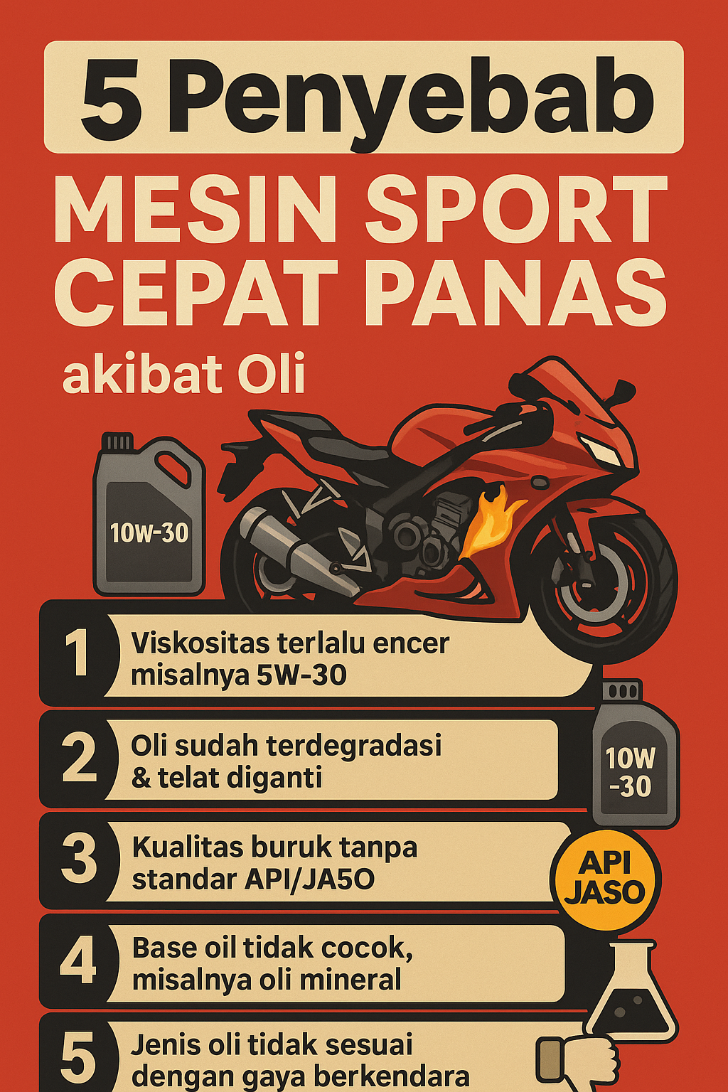 Mesin motor sport cepat panas bukan hanya karena radiator atau cuaca. Pemilihan oli yang tidak tepat adalah penyebab utama yang sering diabaikan. Dengan memilih oli: