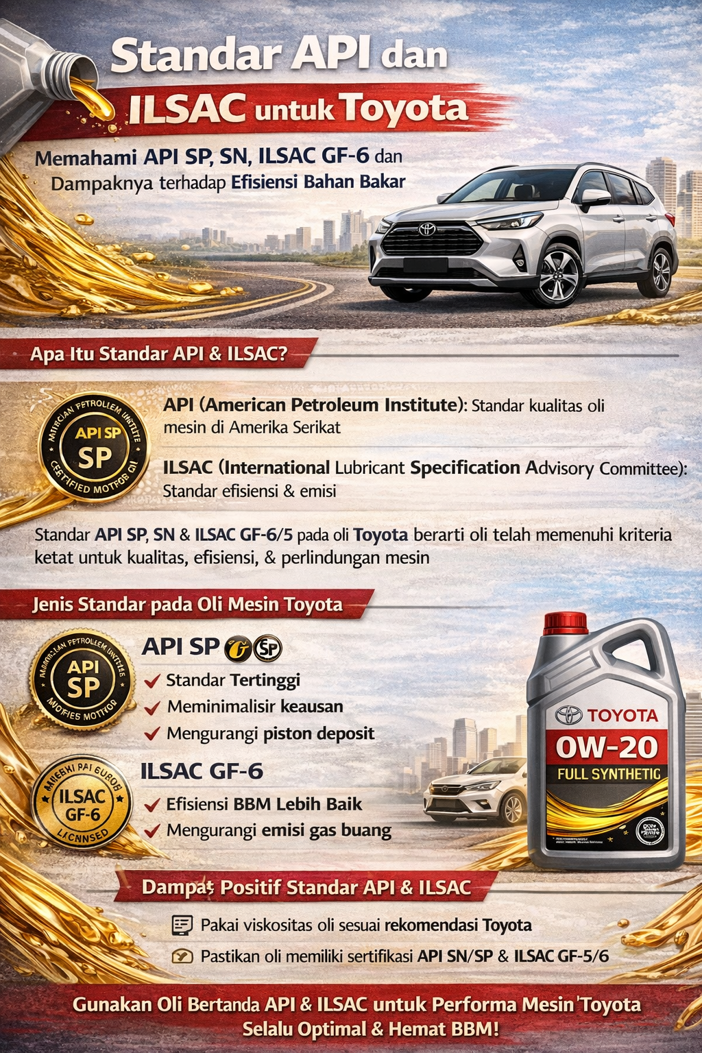 ILSAC GF-6 adalah standar oli terbaru yang meningkatkan efisiensi bahan bakar, melindungi mesin dari keausan, dan menjaga kebersihan mesin.
